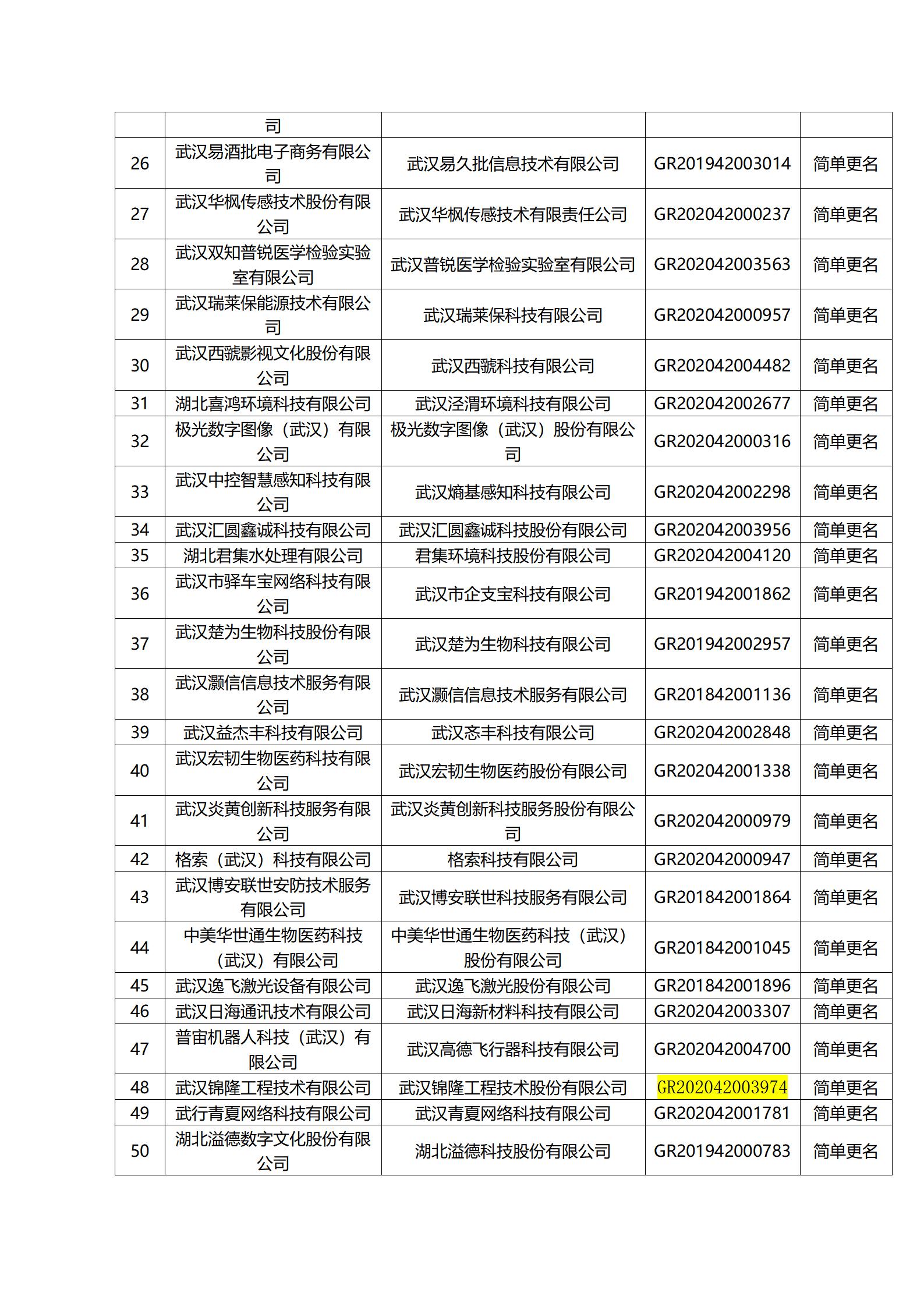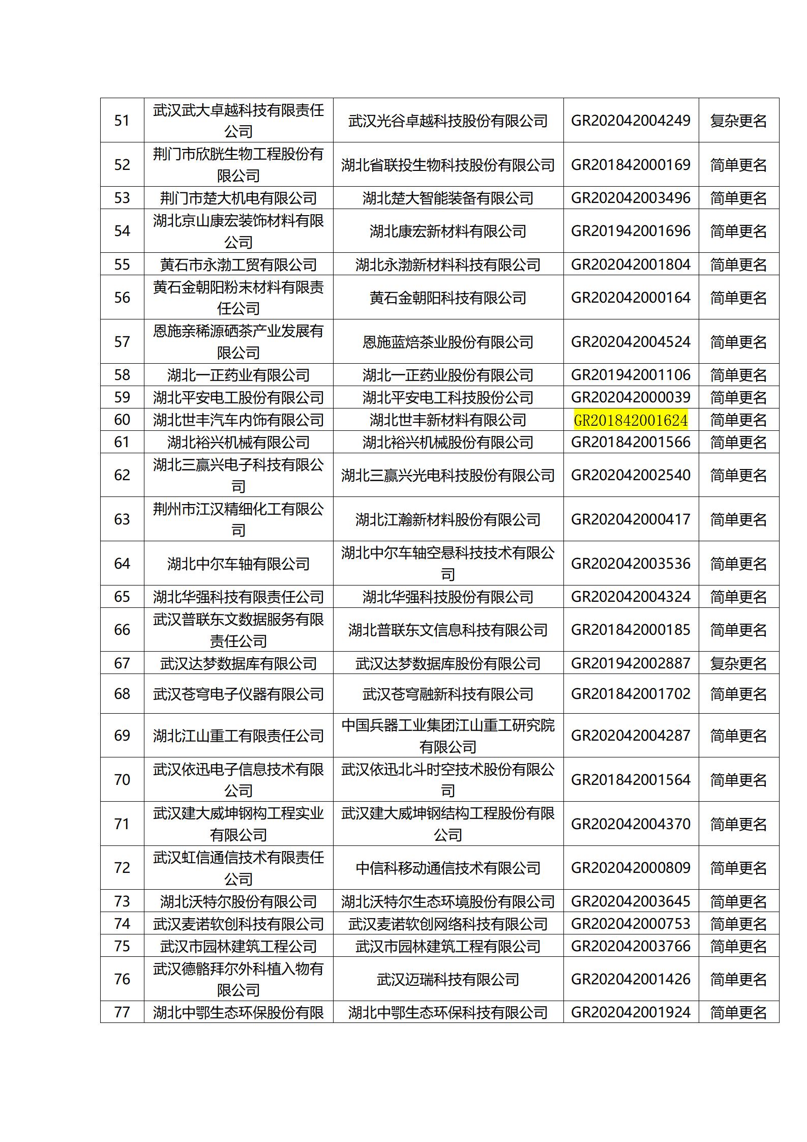 附件:湖北省2021年第一批更名高新技術(shù)企業(yè)名單